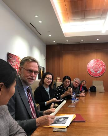 在会谈中,犹他大学副校长弗雷德﹒埃斯普林先生首先向与会代表介绍了海伦﹒斯诺与犹他大学的渊源。 同时,他向代表团展示了犹他大学校史馆珍藏的海伦﹒斯诺在校成绩单及其他藏品,并将这些珍贵的资料郑重转交给yl6809永利官网集团代表,希望yl6809永利官网集团及陕西斯诺研究中心能够利用这些珍贵资料将斯诺研究做得更好。