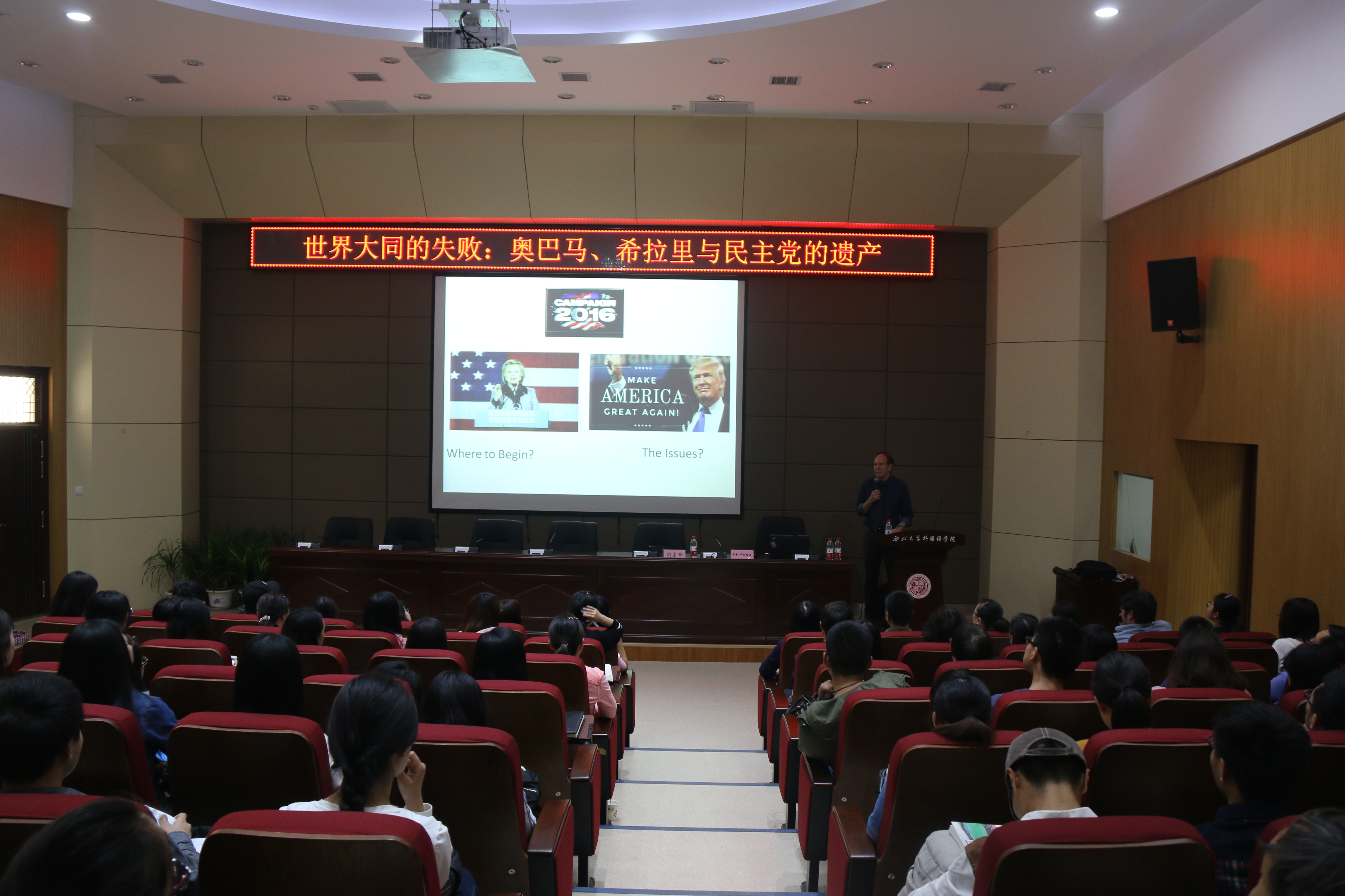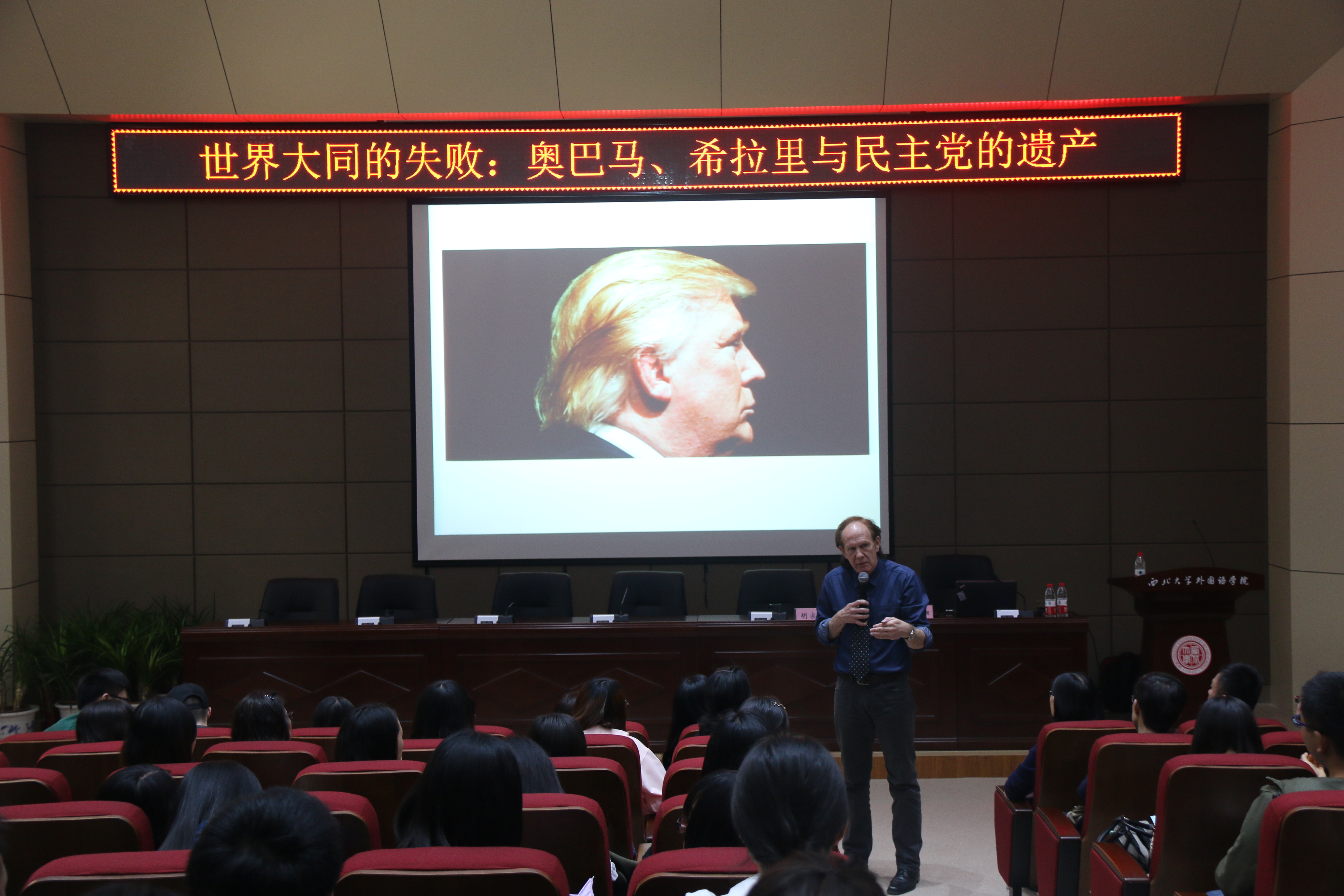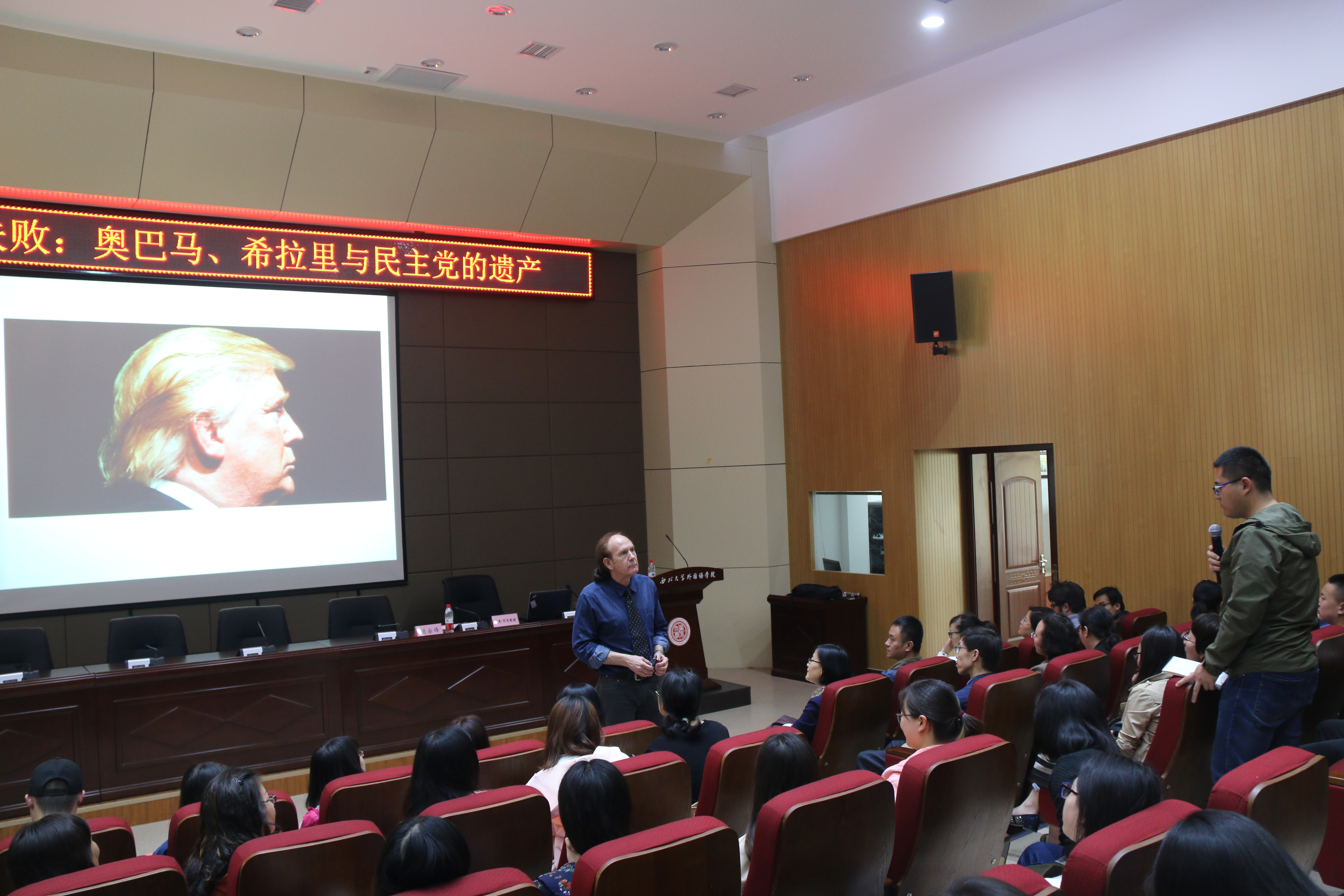 4月24日,美国富布莱特杰出教授、丹麦哥本哈根大学资深教授罗素·邓肯做客我院。在yl6809永利官网集团第二课堂活动中心做了题为“世界大同的失败:奥巴马、希拉里和民治党的遗产”的报告。此次报告由yl6809永利官网集团副院长任海棠教授主持,yl6809永利官网集团师生参与了本次活动。