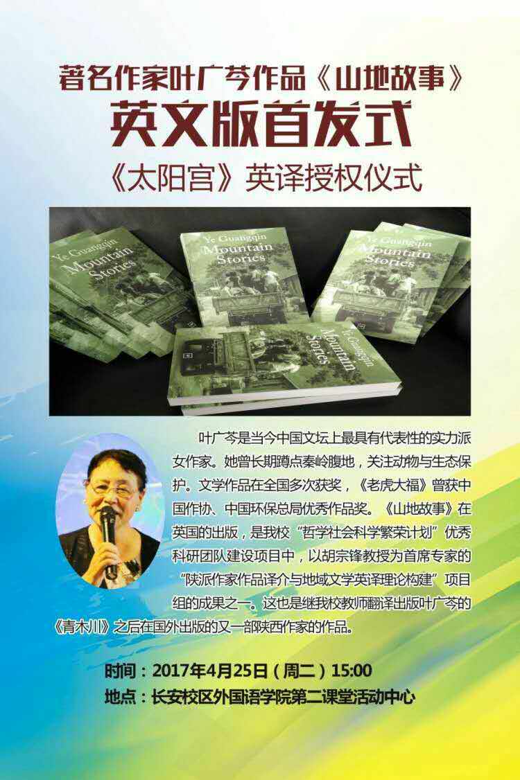 4月25日下午,著名作家叶广芩作品《山地故事》英文版首发式—《太阳宫》英译授权仪式在我院举行。