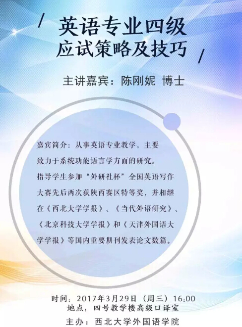 本次讲座增强了同学们对英语专业四级考试的认识,满足了学生的备考需求,提升了同学们应对考试的技巧和能力。相信同学们经过踏实有效的复习,必会取得理想的成绩。
