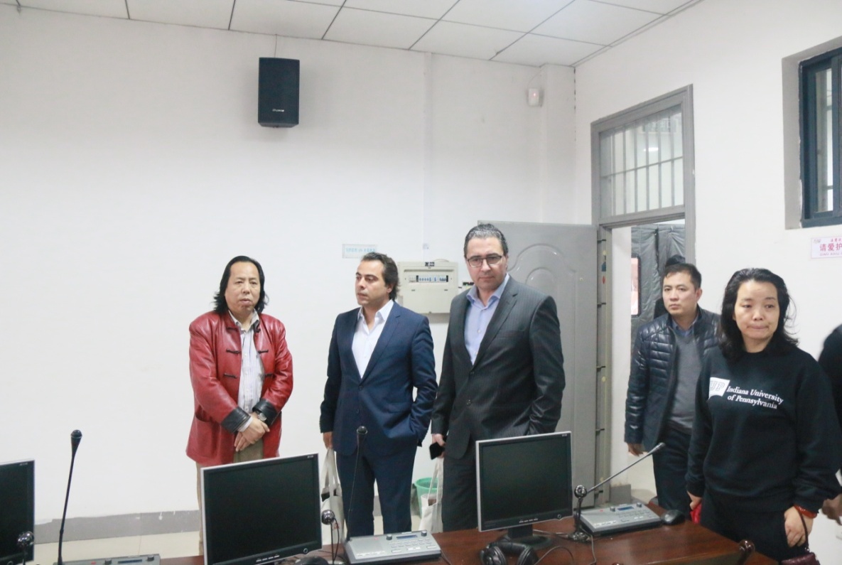 会后,院长胡宗锋教授陪同Júlio Torcato Faria先生和Ricardo Araújo先生参观了学院自主学习机房和高级口译模拟实验室。