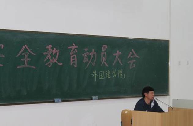 会上,康连科副书记首先通报了近期发生在社会上和校园附近的不安全事件,希望广大同学引起足够的重视,关爱同学,珍惜生命,健康成长。他指出,学生应以学业为重,作为外语专业的学生,应加强自己的专业知识学习和语言应用能力的提高,着重培养自己与他人沟通的能力,不断增强自身的竞争实力。他最后强调,同学们应该珍惜良好安定的学习和生活环境,安排好自己的作息时间,遵守学校各种规章制度和纪律,充分利用学校提供的良好教育资源,努力成才。