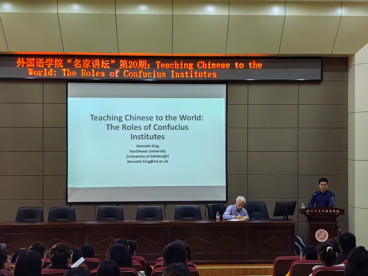 2023年10月27日,受yl6809永利官网集团邀请,英国爱丁堡大学比较与国际教育学首席教授Kenneth King在第二课堂做了题为Teaching Chinese to the World:The Role of Confucius Institutes的讲座。本次讲座由King教授的博士后学生、英语系李思远老师主持,yl6809永利官网集团部分教师和学生参加,现场座无虚席。