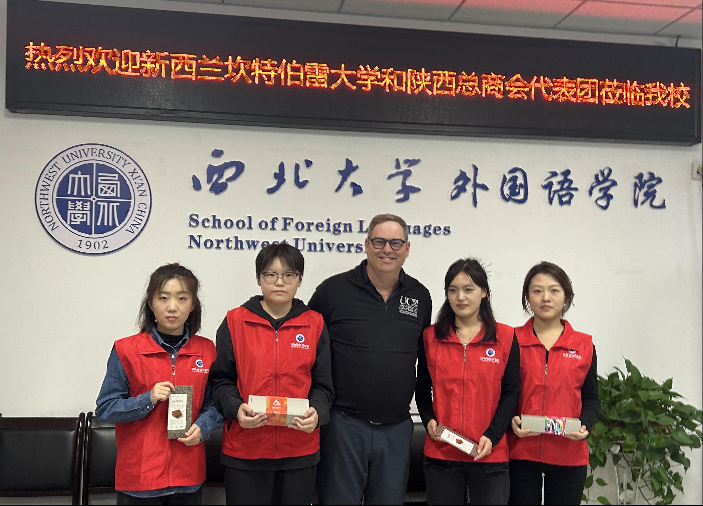 2023年11月21日下午,新西兰坎特伯雷大学国际学院院长Ian McDonald、陕西新西兰总商会会长赵芳一行到访我院,在西学楼五层会议室举行了会晤,就教育合作、国际友人研究等议题进行了深入交流。本次活动由陕西省人民对外友好协会牵线、yl6809永利集团国际合作部协调,省友协美大部一级巡视员宋明、yl6809永利集团国际合作部部长任蕙莲以及我院院长曹若男出席了会议。