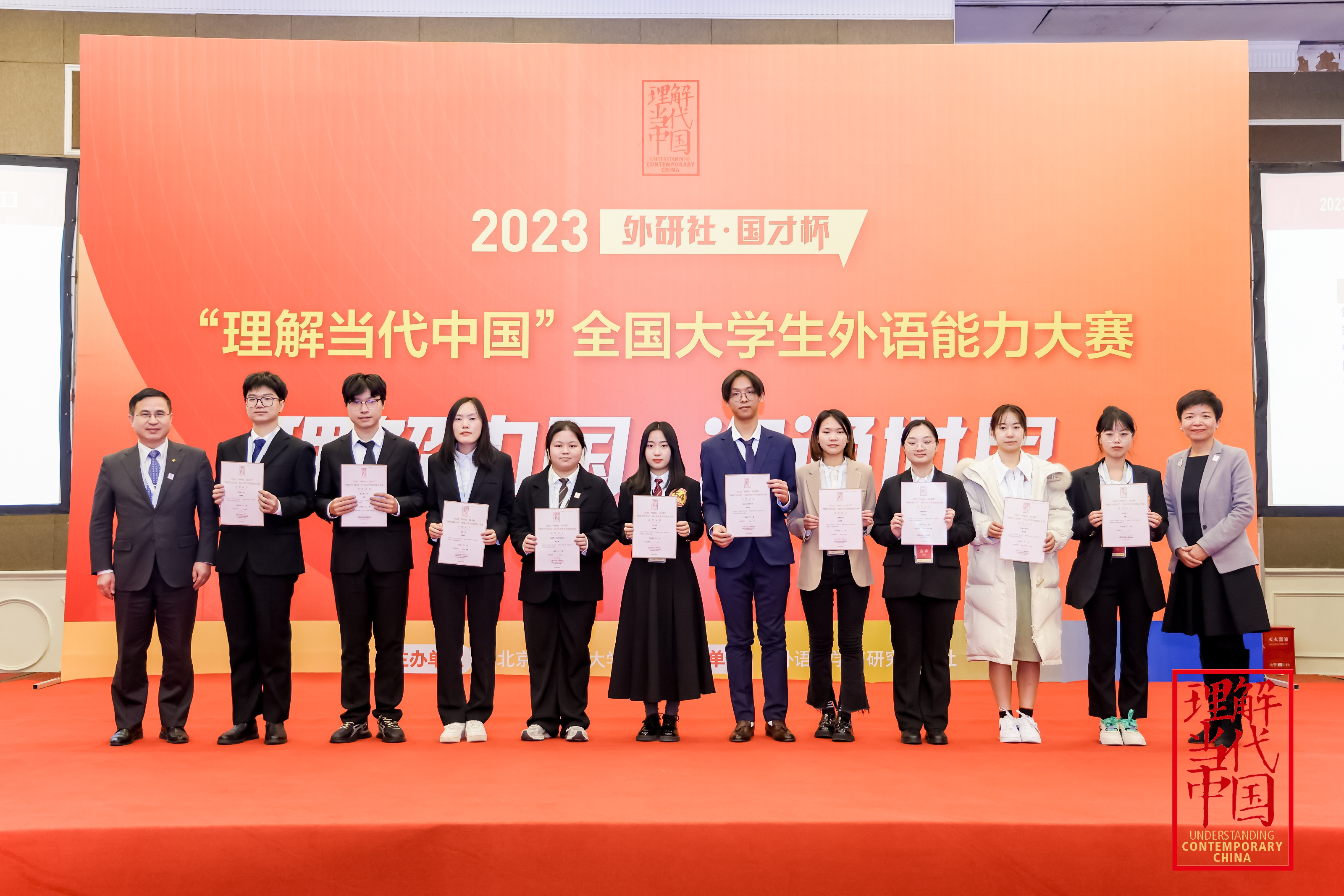 2023年12月7日,由北京外国语大学主办,外研社承办的“外研社·国才杯”“理解当代中国”全国大学生外语能力大赛(多语种组)国赛总决赛在北京圆满落下帷幕。全国多所高校1.5万余名多语种选手竞展风采,经过校赛、省赛(陕西赛区)、国赛一轮的层层选拔,我校日语语言文学专业2022级刘勋同学,在指导老师王欢、张鹏(参与省赛指导)的精心指导下,作为陕西赛区唯一晋级日语组国赛的选手,最终荣获本次决赛日语组银奖。