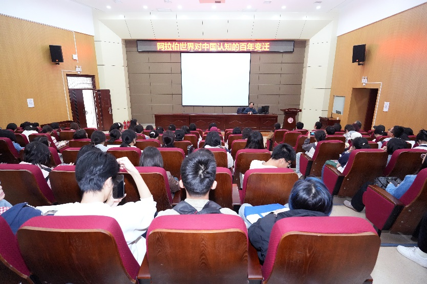 2024年10月24日下午,北京外国语大学阿拉伯学院薛庆国教授应邀在我校长安校区yl6809永利官网集团第二课堂报告厅作了题为“阿拉伯世界对中国认知的百年变迁”的学术讲座。本次讲座由我校叙利亚研究中心主任王新刚教授主持,yl6809永利官网集团近百位教师和研究生参加。