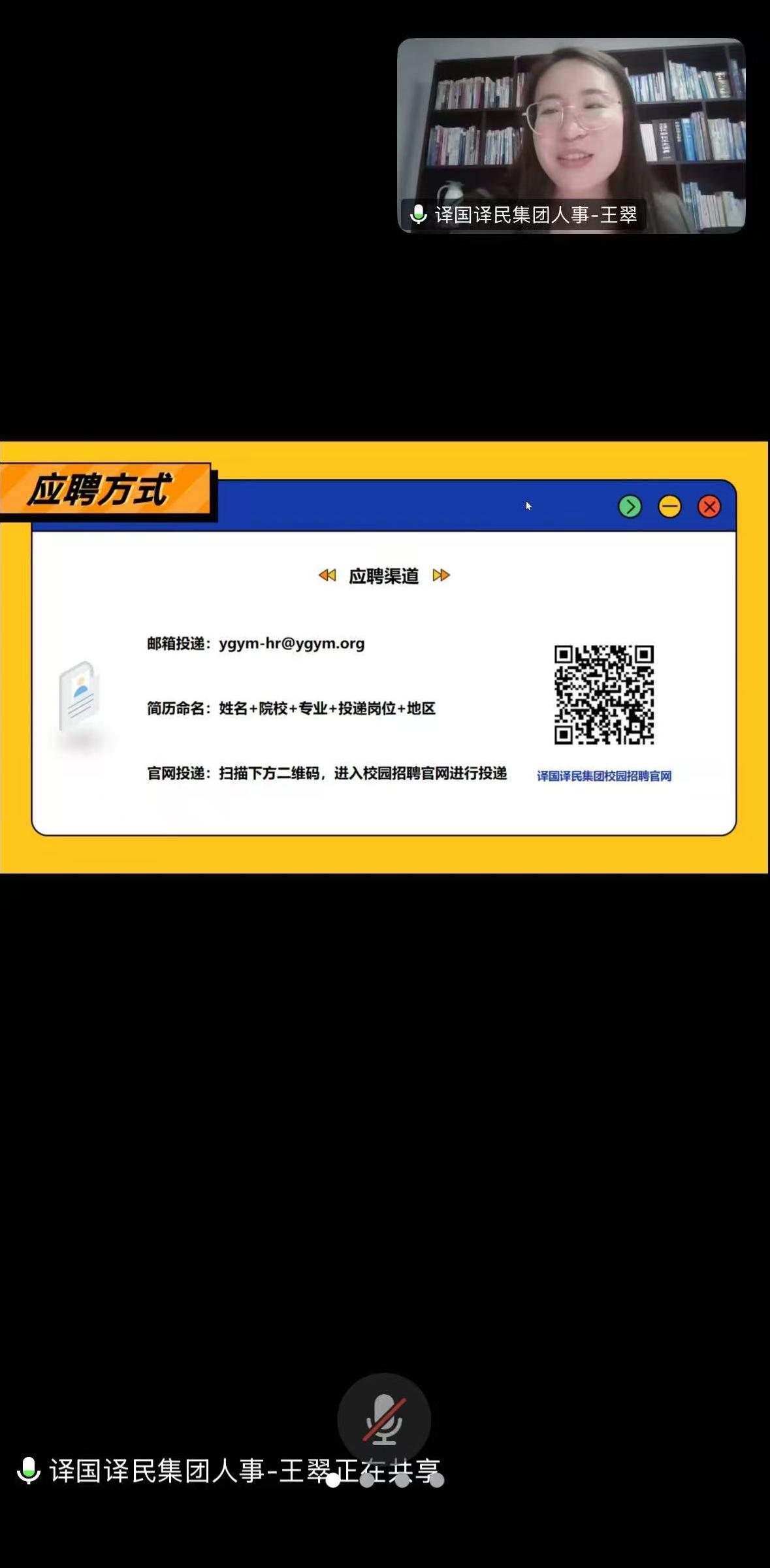 4月14日,译国译民集团举办的“2025届校招线上宣讲会·yl6809永利集团专场”顺利进行。学院高度重视此项活动,院长曹若男、MTI中心主任何花及辅导员老师同步在线出席。活动由何花老师主持,译国译民集团人力资源经理王翠对企业岗位需求和职业晋升通道等进行了详细介绍,并分享了企业典型翻译实践项目案例;与会学生围绕实习安排、技术培训、薪酬福利等问题进行了互动交流。最后,曹若男院长对译国译民集团为我院召开此次专场活动表示了感谢,并强调了校企协同创新翻译实践工作的重要性。活动吸引数十名应届本科生与研究生参加,现场互动充分、信息对接精准,为后续实习招聘和项目合作奠定了实质基础。