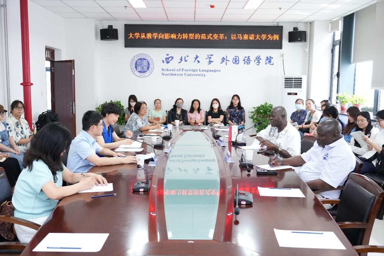 曹若男教授回顾了我院在非洲研究方面的探索成果,并表示,学院近年来积极推动区域国别研究与语言学科融合发展,持续开展中非高教合作项目和国际学术交流活动,取得了积极进展。她特别强调,通过与非洲高校高层管理者的面对面对话,能够帮助师生更好地理解非洲在高教治理、知识创新、人才培养等方面的独特路径与宝贵经验。未来,学院将继续打造非洲研究与国际合作的学术平台,服务国家战略,回应全球关切。