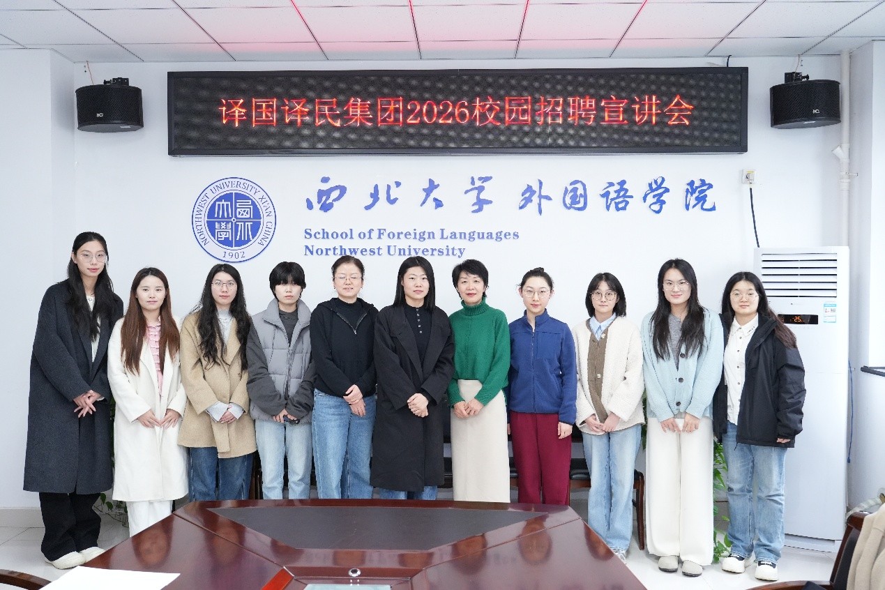 2025年10月23日下午,译国译民集团2026届校园招聘宣讲会在我院会议室顺利举行。学院MTI中心主任何花、院长助理许娜及部分学生代表共同参会。