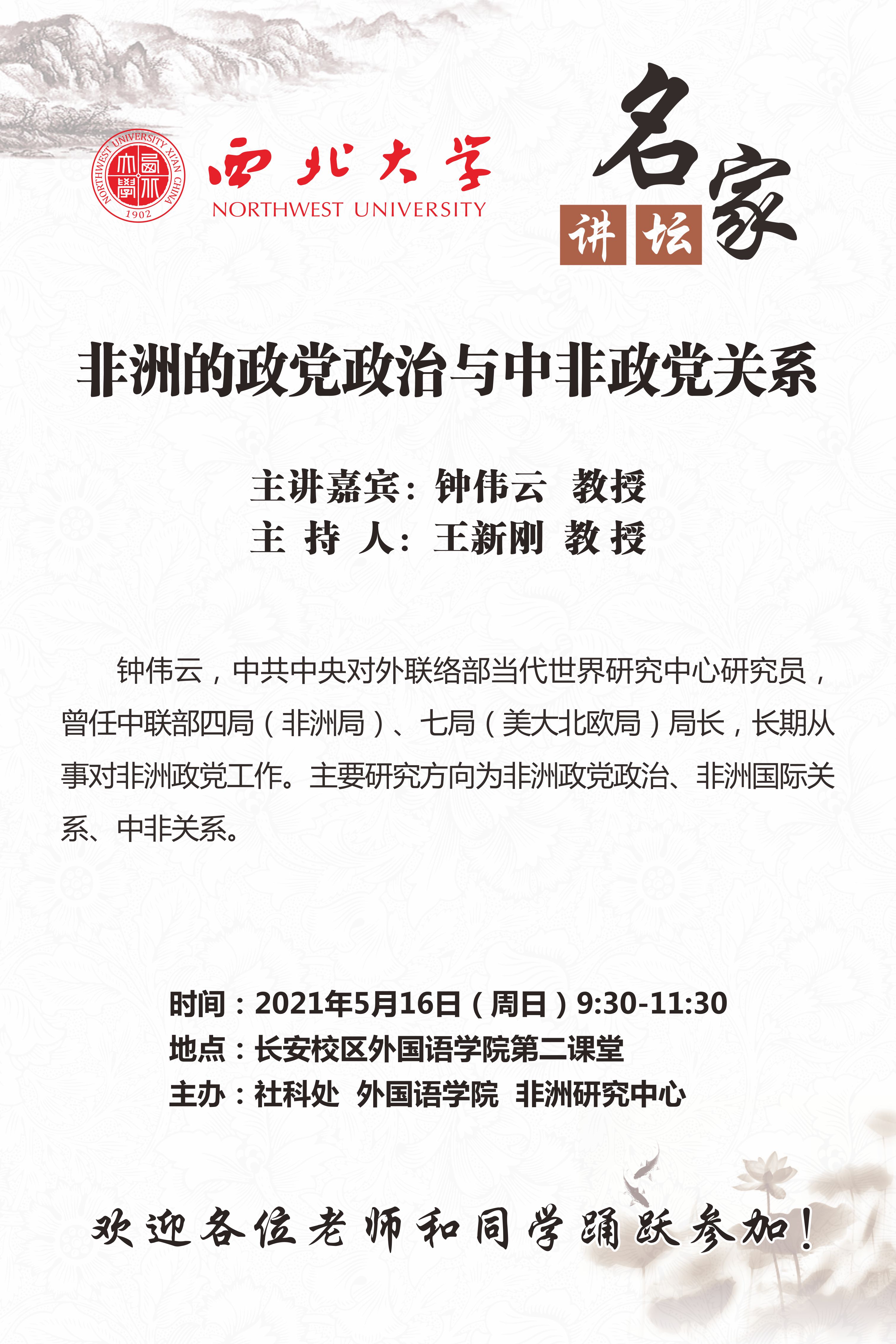 学院定于2021年5月16日(周日)上午9:30召开关于《非洲的政党政治与中非政党关系》报告,欢迎各位师生积极参加。