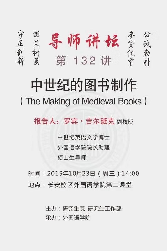 学院定于2019年10月23日(周三)下午14:00召开关于《中世纪的图书制作》报告,欢迎各位老师积极参加。