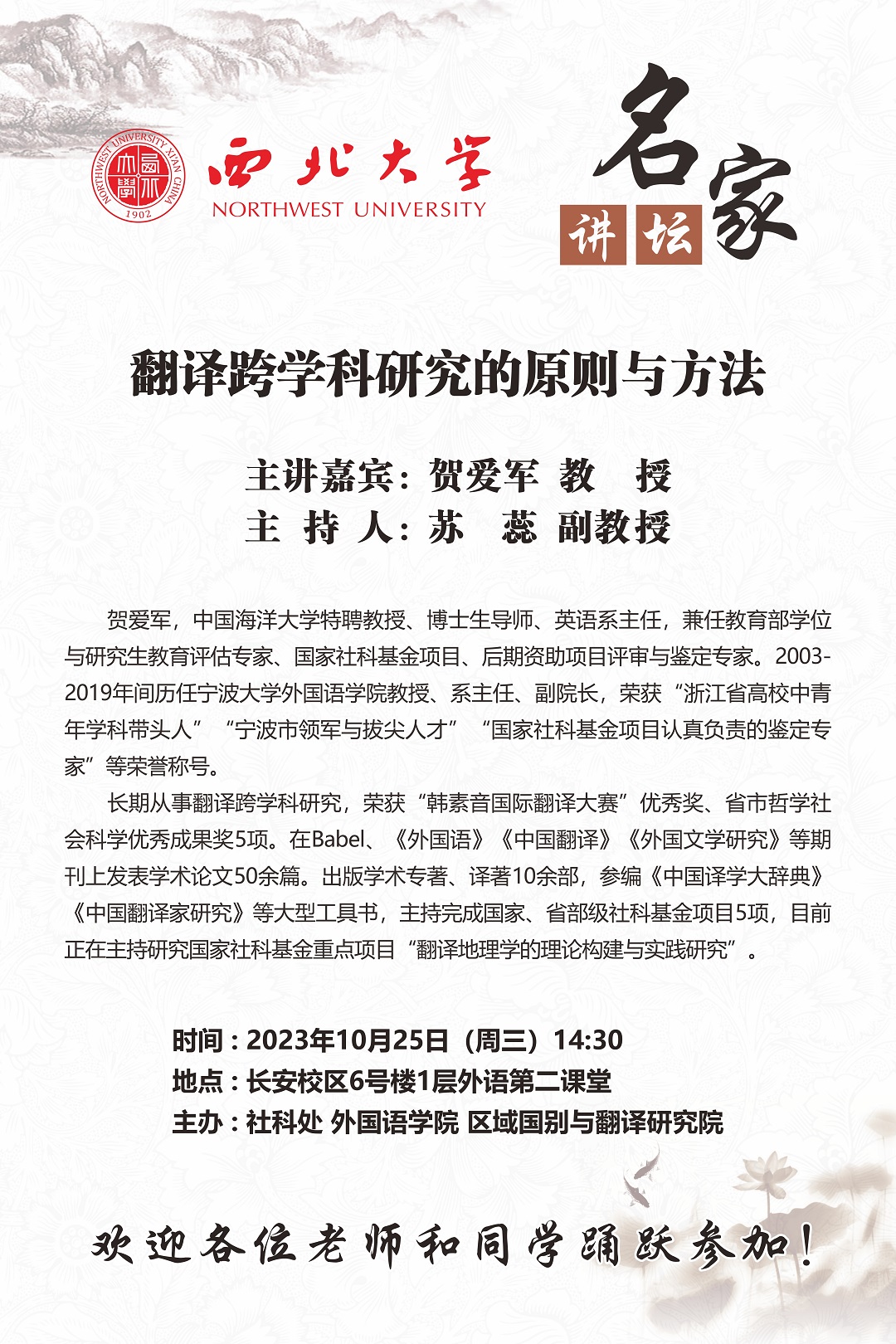 yl6809永利官网集团名家讲座系列之十八——翻译跨学科研究的原则与方法