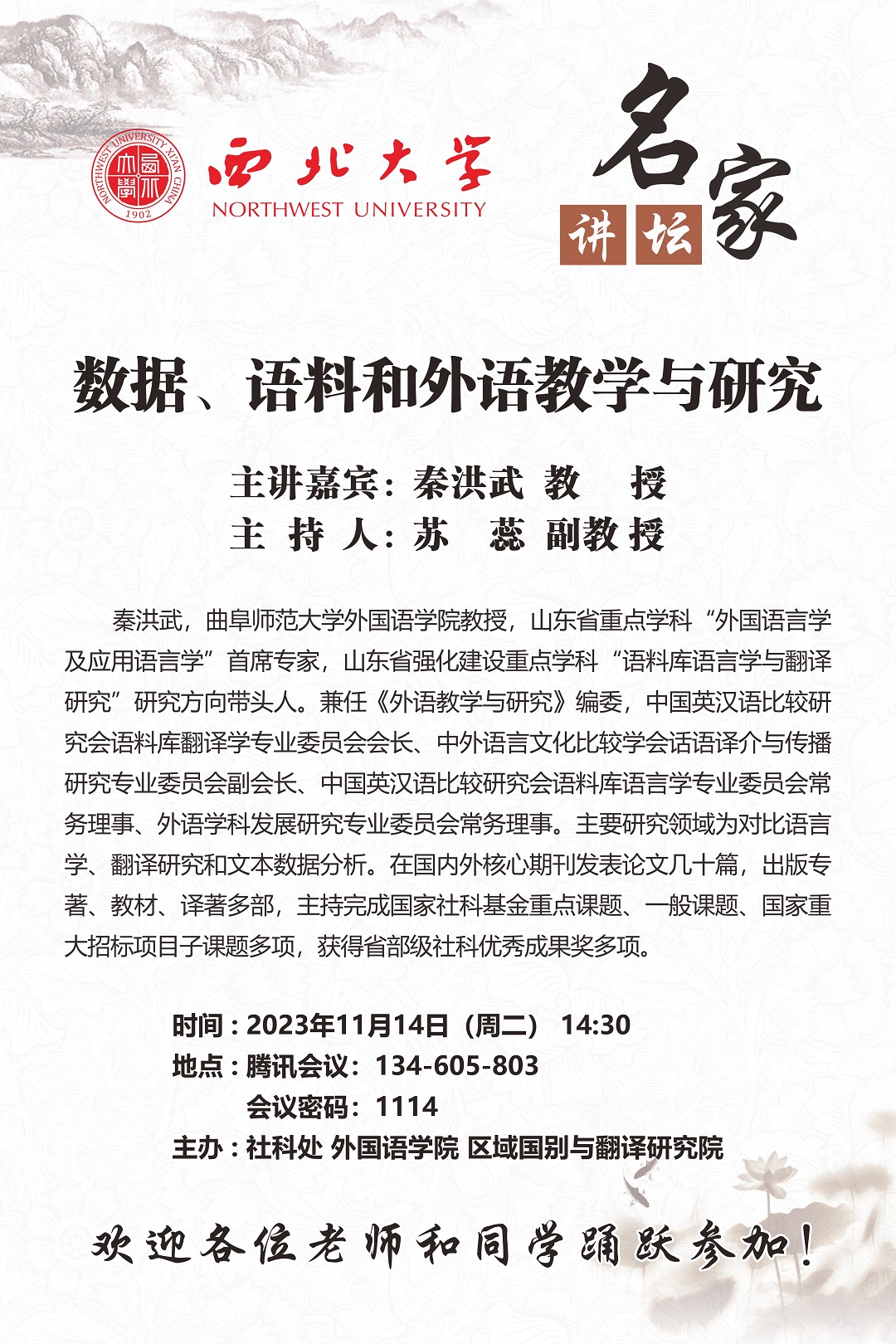 yl6809永利官网集团名家讲座系列之二十二——数据、语料和外语教学与研究