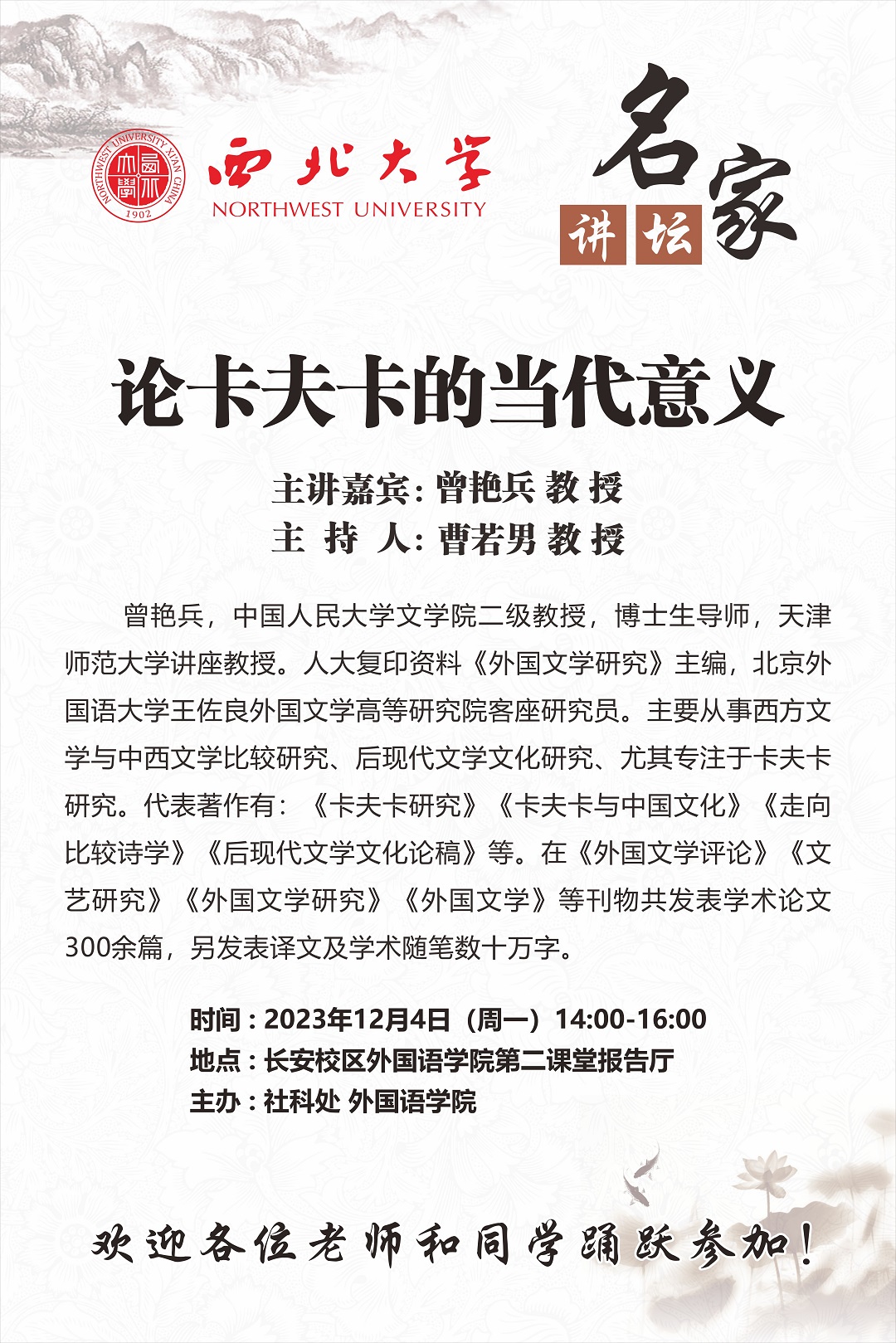 yl6809永利官网集团名家讲座系列之二十七——论卡夫卡的当代意义