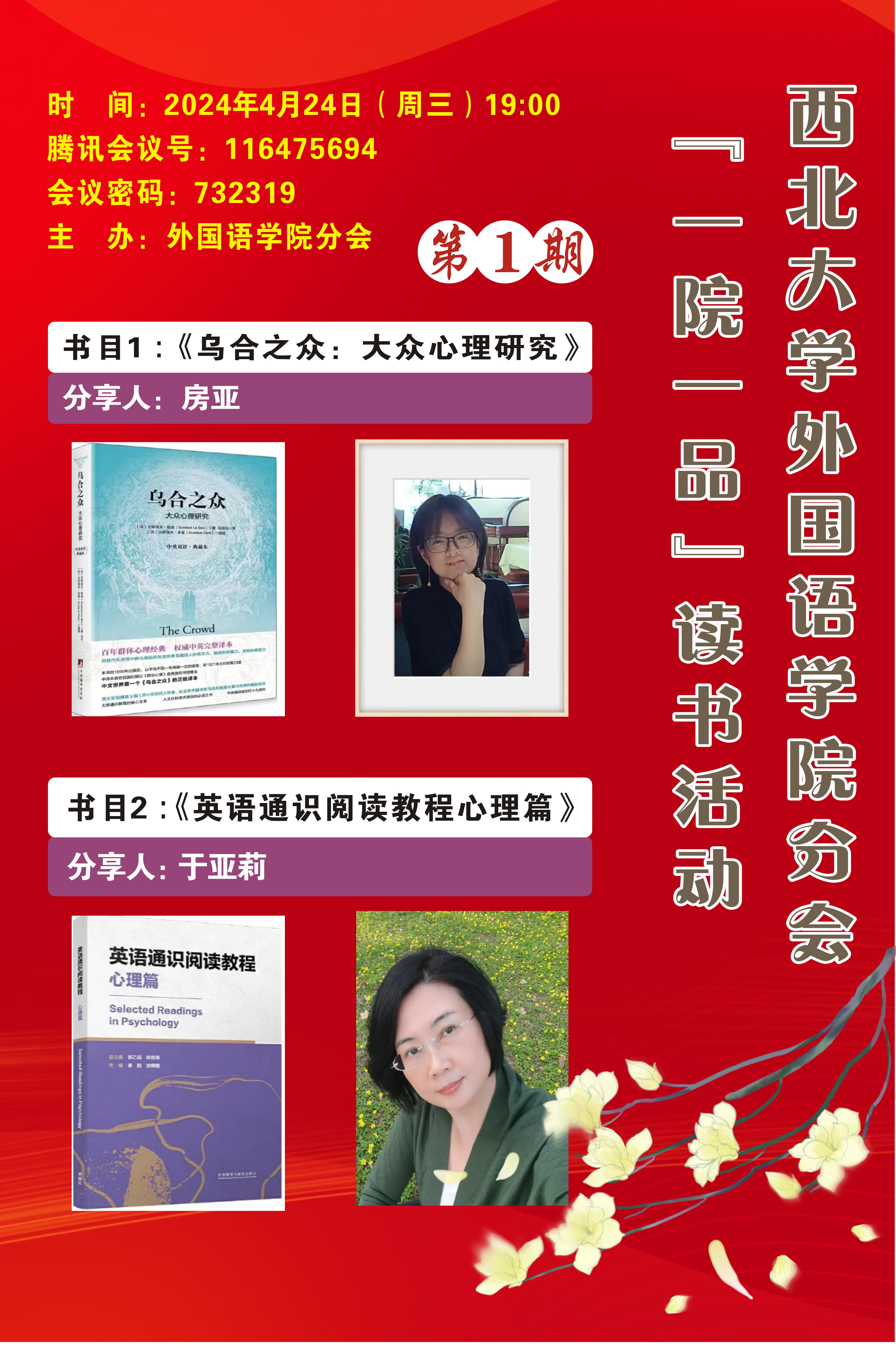 为了迎接联合国教科文组织确立的第29个“世界读书日”(每年4月23日),丰富外院教职工的业余文化生活,充分发挥不同系部的语言专长与优势,建设并落实yl6809永利官网集团分会“一院一品”项目“各美其美、美美与共”思路下的各项活动,我院计划于2024年4月24日开展主题为“跨越语言的阅读之旅”的读书分享活动。