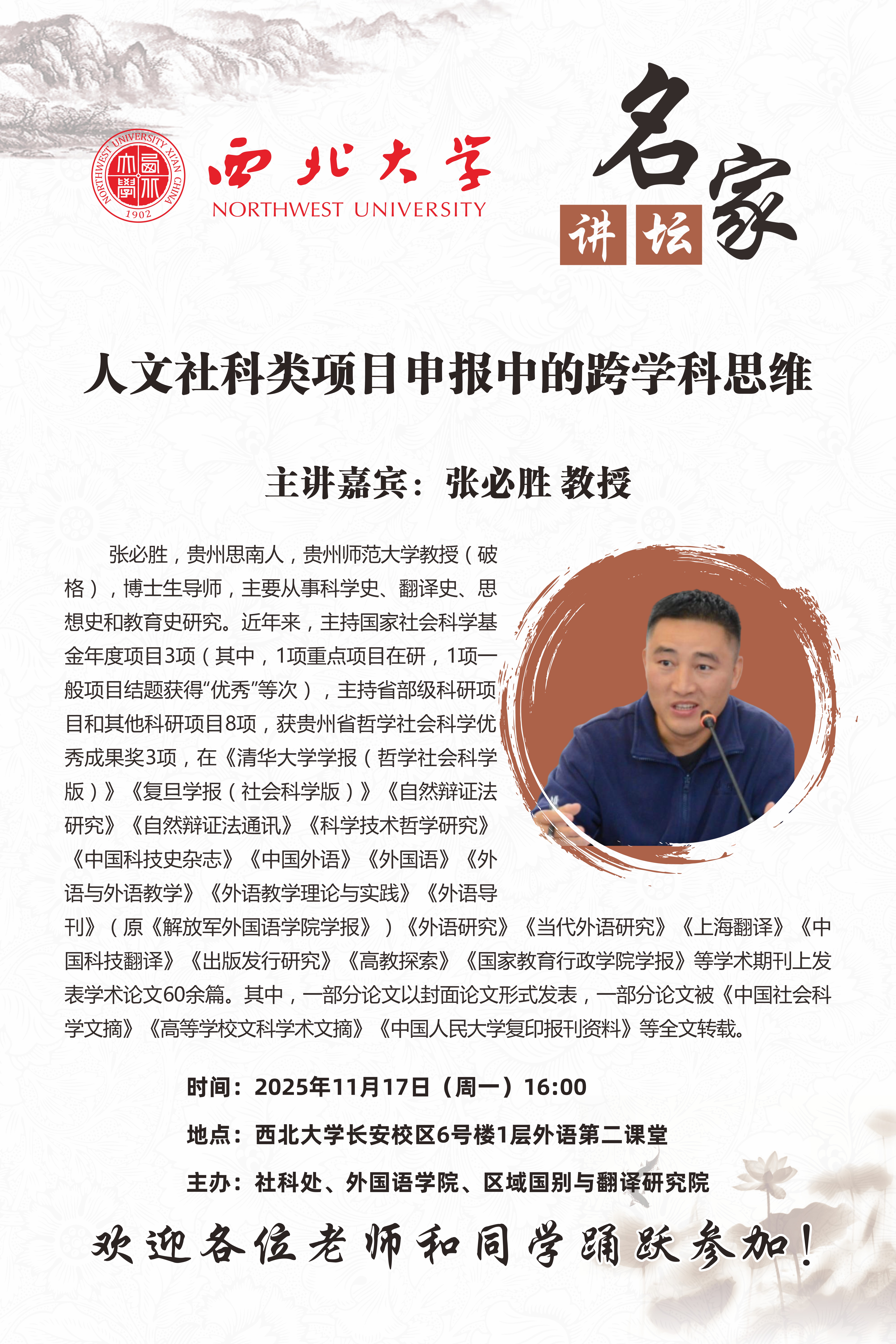 yl6809永利集团名家讲坛——人文社科类项目申报中的跨学科思维